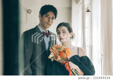 ドレス姿の新婦とタキシード姿の新郎 ウエディングイメージ