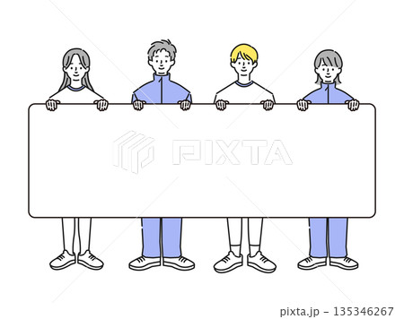 体操服とジャージを着て看板を持っている学生のイラスト