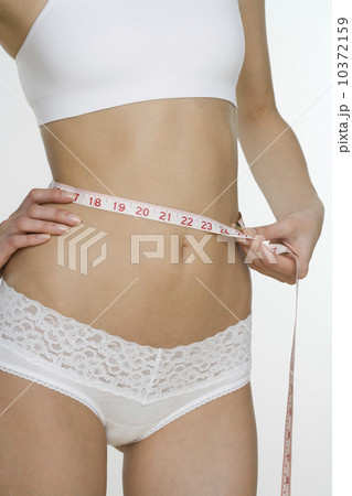 Woman in underwear measuring waist