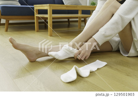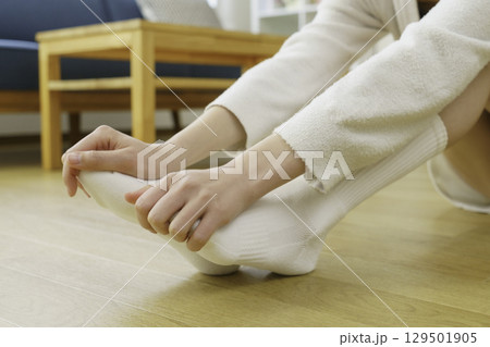 ルームソックスを履く女性 冷え性 ボディパーツ パーツカット 顔なし