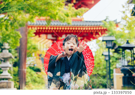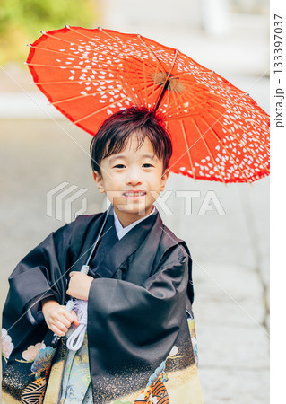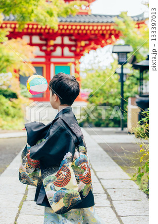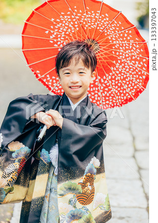 七五三 子供の晴れ着の着付け 5歳男児の晴れ着の着付けをする工程