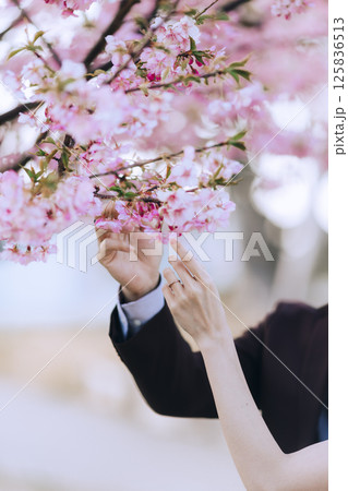 桜と前撮りウェディング撮影