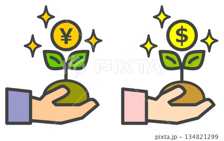 株式の投資や取引でお得に資産を増加させて成長するイラスト