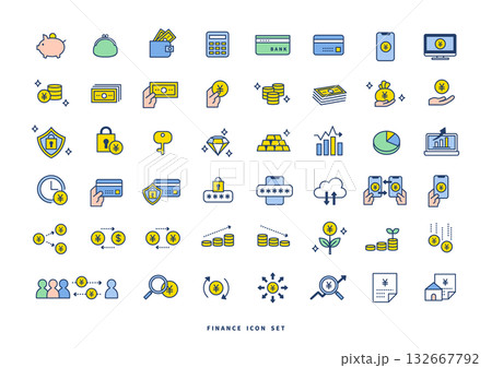 カラフルなお金・節約・家計管理アイコンセット