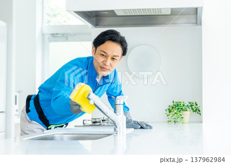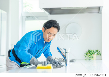 ハウスクリーニング キッチンの掃除をするスタッフ