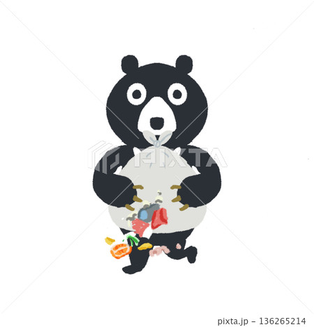 ゴミを抱えて逃げるツキノワグマのイラスト ゴミ荒らし・注意喚起