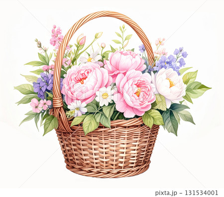卵とカゴと花のイラスト [AI生成・プロ仕上げ]