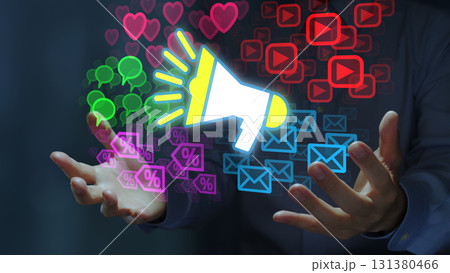 オンラインキャンペーンとソーシャルメディアプロモーション。デジタルマーケティング戦略。メガホンアイコ