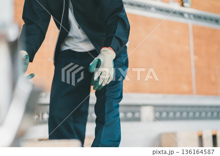 道具を持って現場に向かう塗装職人の後ろ姿 Generative AI
