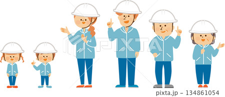 作業員5人の全身イラスト 青彩飾あり