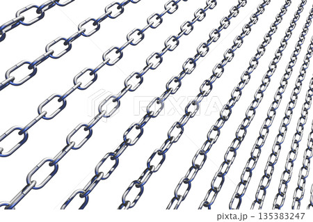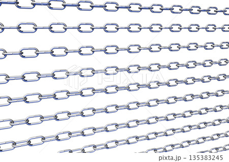 重厚な金属チェーンのクローズアップでつながりと強固な結束を象徴する3Dイメージイラスト