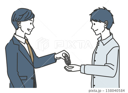 自動車のスマートキーを手渡す男性 レンタカー 納車