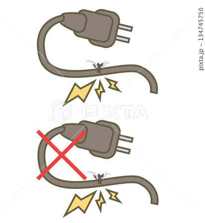 コンセント使用禁止のマークと赤い禁止標識のイラスト