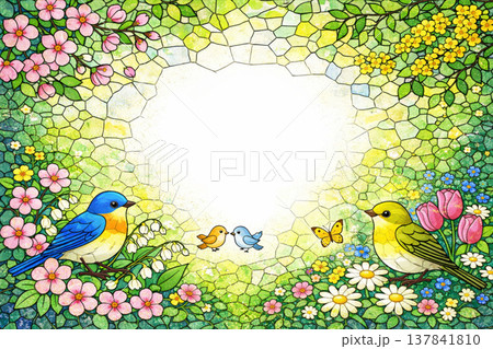 フレーム素材 春・初夏イメージ 花 ステンドグラス風