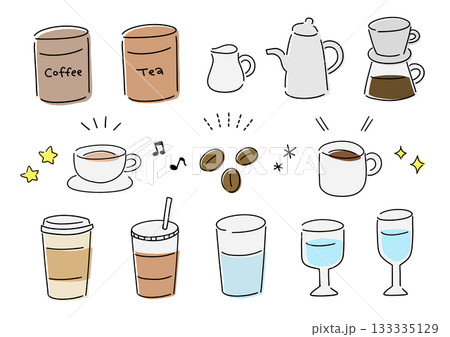 夏イメージ小物イラスト水彩画風冷たい飲み物のある風景