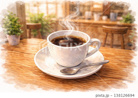 ブラックのホットコーヒー 水彩風手描きイラスト