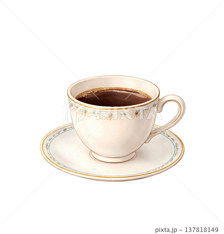 コーヒーカップ 柄付きカップ カフェ食器 水彩イラスト素材
