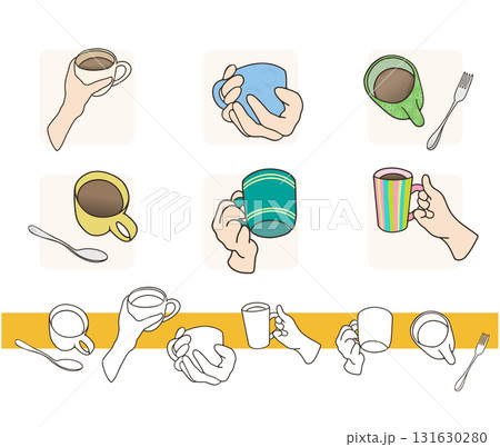 コーヒーカップとカップを持った手
