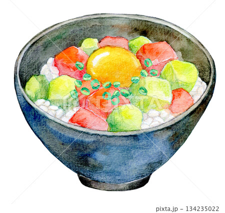 水彩イラスト 手描きイラスト マグロアボカド丼