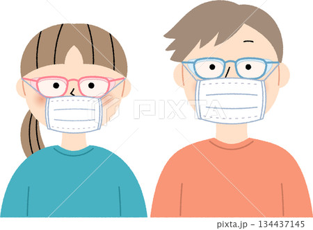 マスクでメガネが曇って見えにくい男女のミニマルイラストセット