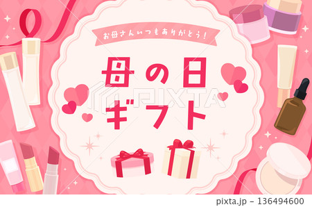母の日のコスメフレーム_ピンク文字・背景なし_横
