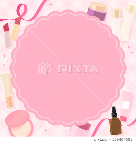 ホワイトデーフレーム_丸フレーム_コスメ_文字なし_正方形