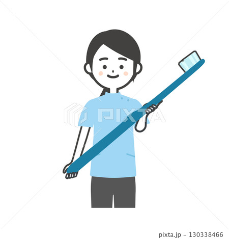 大きな歯ブラシを持ったケーシー姿の男性イラスト
