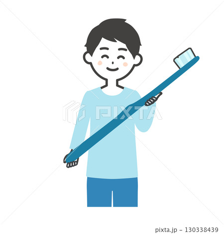 大きな歯ブラシを持つ男の子イラスト