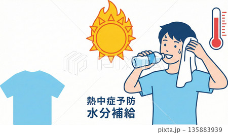 猛暑の中で水分補給をする男性 熱中症予防キャンペーンイラスト