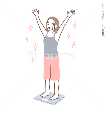 体重計に乗って喜ぶ細身の女性のイラスト素材