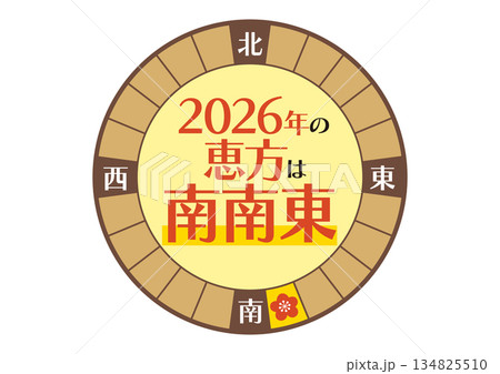 2026年(令和八年) 節分・恵方 南南東の方位磁針のバナーイラスト【年号はんこ】