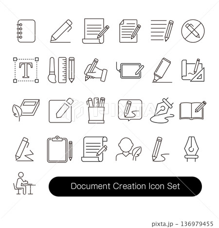 ベクターでモノクロのコピーライティングに関する線画アイコンセット