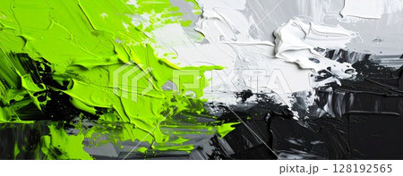 厚塗りされた絵具の凹凸が特徴のダイナミックな抽象画