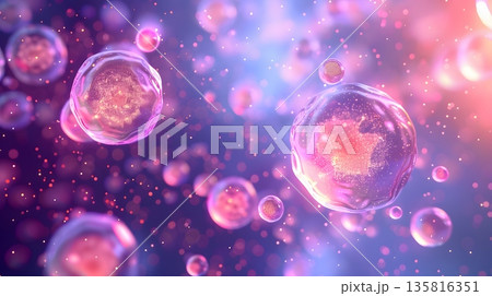 体内の幹細胞が自己複製して増殖したイメージの3Dイラスト 卵巣内の卵子、生殖幹細胞 医療系素材