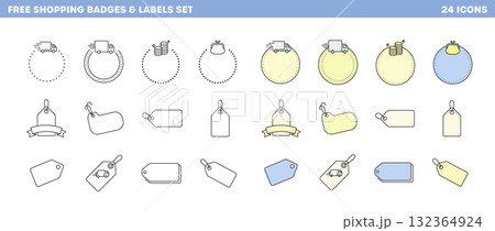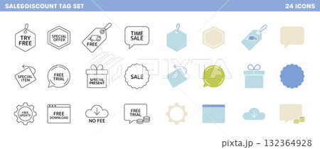 セール・割引などに使いやすいタグ・バッジアイコンセット(線画・線無し色塗りバージョン)