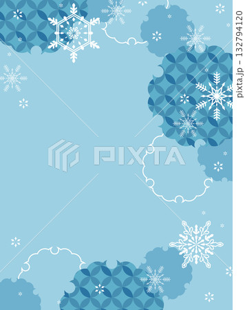 冬のフレームイラストセット 雪の結晶フレーム リボン