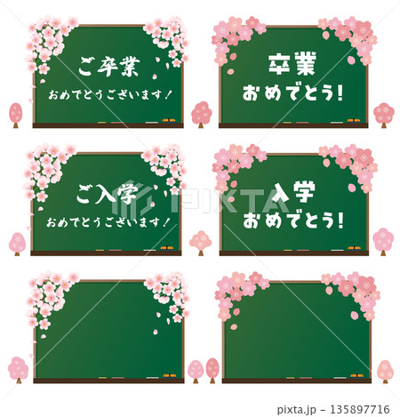チョークアートが描かれた黒板のイラスト素材 ベクター 入園 入学 卒業 学校