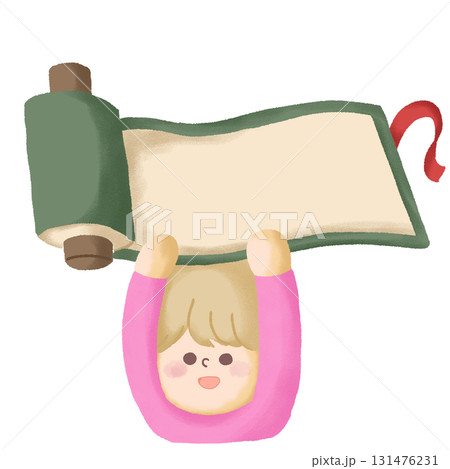 日本の歴史ある文章や記述を記載した巻物のイラスト