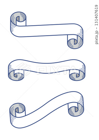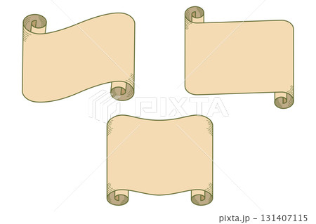 アンティーク調の巻物風スクロールバナー3種セット|巻物,バナー,リボン,スクロール,フレーム