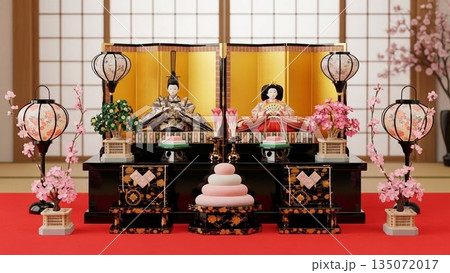 ひな祭り イラスト リアル 雛人形 3D