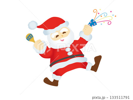 クラッカーを鳴らすサンタクロースとトナカイのイラスト素材