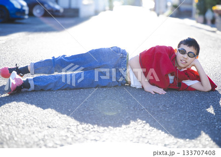放課後地べたに寝転がる小学生