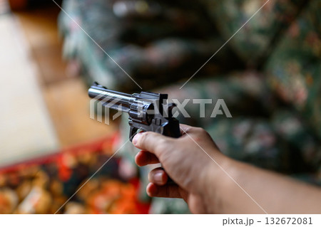 男性に拳銃・ピストルを突き出す女子高生(傷害・正当防衛・犯罪・脅迫・銃乱射事件)