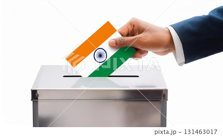 インドの国旗の投票用紙を投票する手と投票箱。選挙。