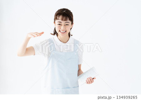 絵本を持つ保育士の女性