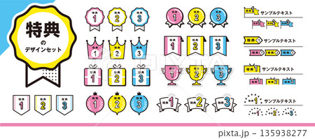 ランキングでも使える!ポップな特典の素材セット/リボン、メダル、王冠など