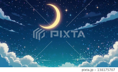 ゲーム背景 雲の上の美しい三日月