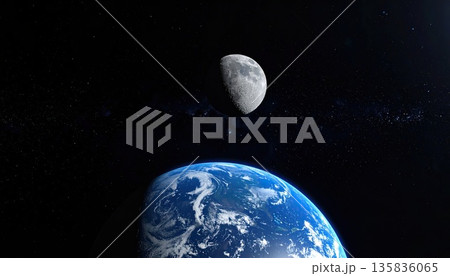 《AI画像》宇宙から見た地球と月