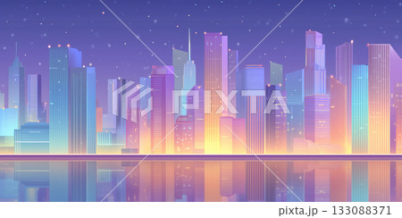 ファンタジックなネオンカラーが広がる都市の夜