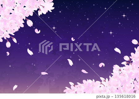 夜桜と星空のイラスト_横4